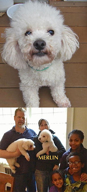 Merlin is a 5 year old bichon weighing 10.5 lbs. He came from a backyard breeding situation. Merlin was a very shy and timid little bichon but once he met his new sister Bichon buddy... and his new family... he took over at the leader and came out of his shell. He now exhibits bichon traits - bichon buzzing, prancing and snuggling. Congratulations to Merlin who received his Christmas Present early in December 2012, and now has a wonderful forever home! We know he will be very happy here! |
